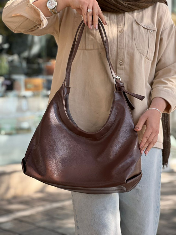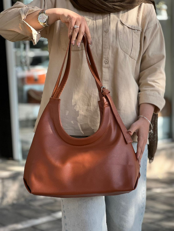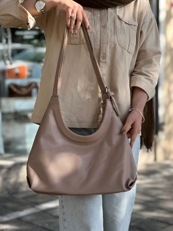 کیف دستی زنانه مدل هوبو، ساختهشده از چرم مصنوعی باکیفیت، سبک، جادار و مناسب استفاده روزمره و استایلهای کژوال. این کیف با طراحی ساده و جذاب، انتخابی عالی برای خانمهایی است که به زیبایی و کارایی اهمیت میدهند