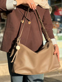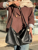 طراحی : کیف هوبو زنانه با جنس چرمی نرم، طراحی مینیمال و فضای داخلی جادار. مناسب استایل روزمره، دانشگاه و محل کار. سبک، شیک و کاربردی